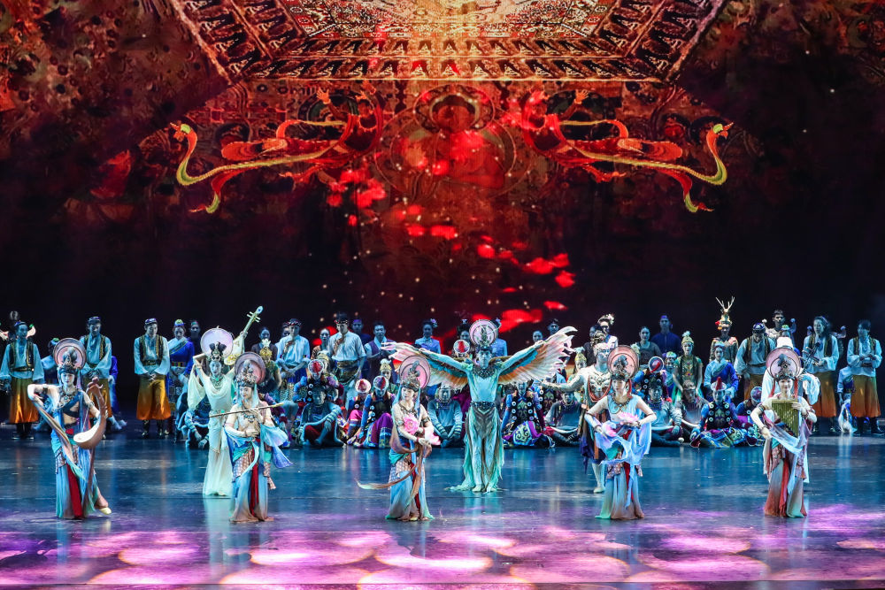 2025年9月20日,演員在敦煌大劇院表演新版《絲路花雨》。1979年,大型民族舞劇《絲路花雨》在中國西北誕生。編創(chuàng)者們從敦煌莫高窟的壁畫和彩塑中尋找靈感,將壁畫上凝固了千年的舞姿,轉化為動態(tài)舞蹈語言。40多年來,《絲路花雨》累計演出超4000場,足跡遍布40多個國家和地區(qū),被譽為“中國舞劇的里程碑”和“活的敦煌壁畫、美的藝術享受”。此次新版歷經(jīng)兩年半創(chuàng)排,通過復原與創(chuàng)新對經(jīng)典藝術進行當代詮釋,彰顯了中華優(yōu)秀傳統(tǒng)文化的生命力。