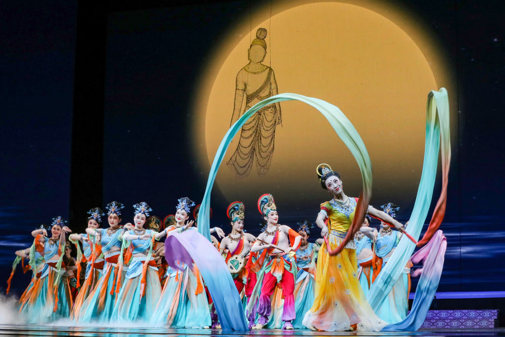 2025年9月22日,在敦煌舉辦的“相約敦煌”國際文化交流演出活動上,甘肅省演藝集團的演員展演《樂動敦煌》選段?!稑穭佣鼗汀方柚鷮δ呖弑诋?、藏經(jīng)洞古籍的解讀梳理,活化敦煌古樂器、古樂譜研發(fā)成果,通過全息投影等手段,結合專業(yè)演員的表演,將莫高窟壁畫中的樂舞盛景生動再現(xiàn),讓觀眾沉浸式感悟傳承千年的敦煌樂舞文化魅力。