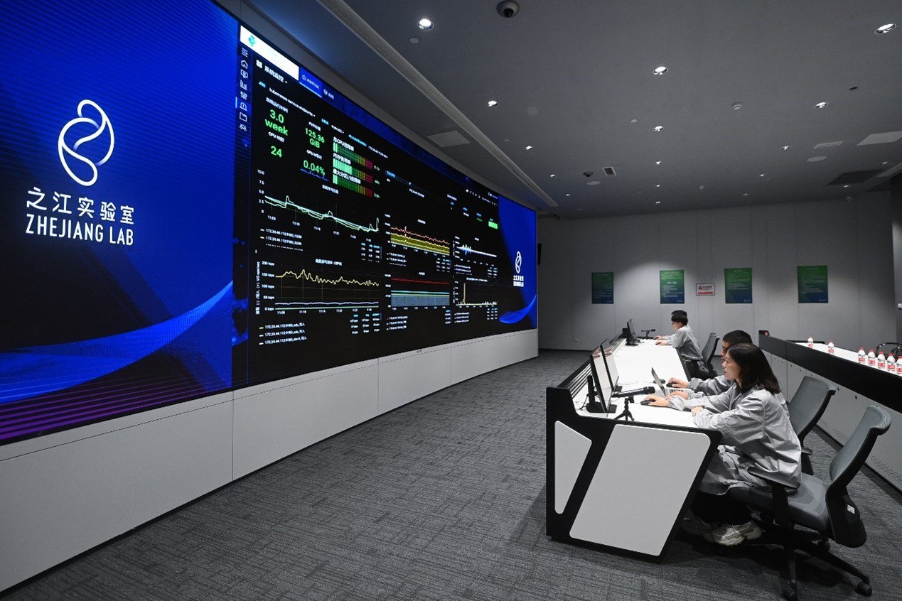 之江實(shí)驗(yàn)室計(jì)算與數(shù)據(jù)中心的工程師通過“之江云”系統(tǒng)監(jiān)測服務(wù)器集群的運(yùn)行狀態(tài)。新華社記者 黃宗治 攝