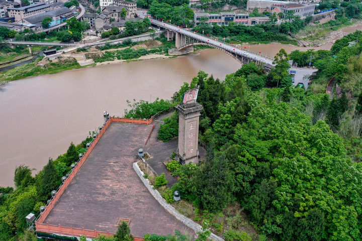 位于赤水河畔的貴州省遵義市習(xí)水縣土城鎮(zhèn),是赤水河中游的重要碼頭,同時(shí)也被稱作“躺在紀(jì)念館上的紅色小鎮(zhèn)”。1935年,中央紅軍在土城一渡赤水河,拉開了四渡赤水戰(zhàn)役的序幕。這是2021年4月21日拍攝的土城渡口紀(jì)念碑(無人機(jī)照片)。