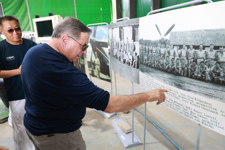 2025年7月16日,美中航空遺產(chǎn)基金會(huì)主席杰夫·格林在貴州黃平舊州機(jī)場(chǎng)查看飛虎隊(duì)資料照片。抗戰(zhàn)時(shí)期,舊州機(jī)場(chǎng)主要承擔(dān)飛機(jī)加油、彈藥補(bǔ)充和維修任務(wù)。常駐于此的美國飛虎隊(duì)?wèi)?zhàn)機(jī)頻頻在該機(jī)場(chǎng)起降,參加了湘西會(huì)戰(zhàn)、衡陽保衛(wèi)戰(zhàn)等著名戰(zhàn)役。該機(jī)場(chǎng)見證了中美聯(lián)合反抗法西斯的光輝歷史,還為確?!榜劮搴骄€”的順利暢通發(fā)揮了舉足輕重的作用。