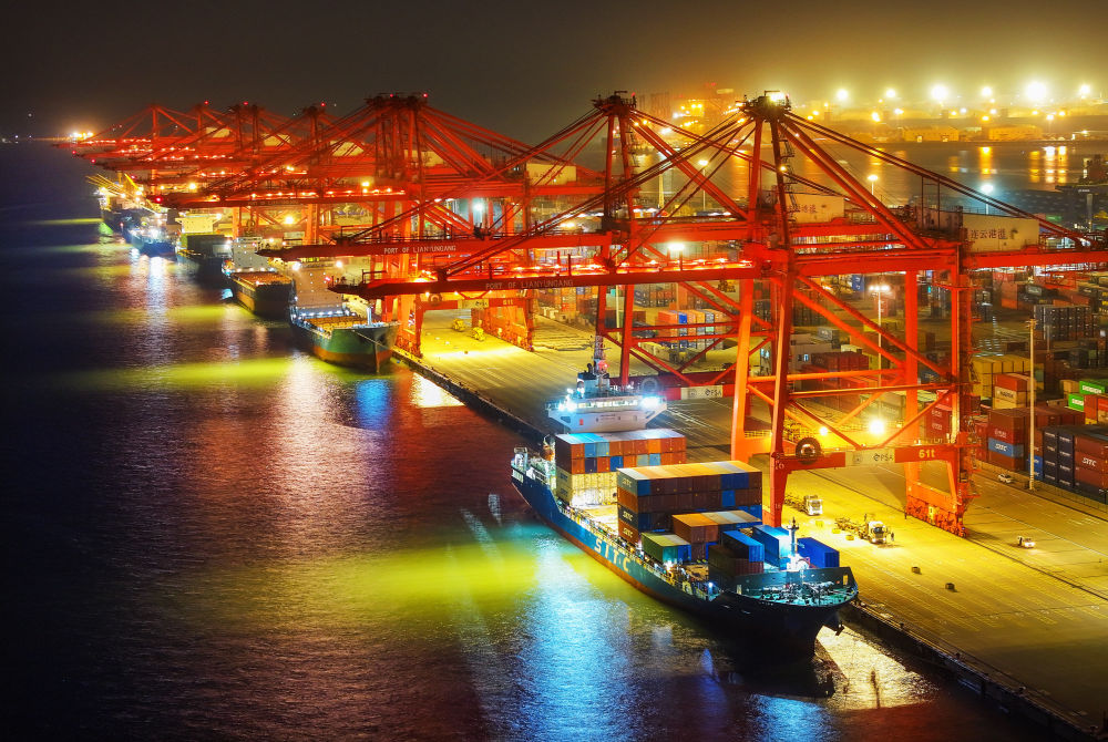 2024年12月14日晚拍攝的江蘇省連云港港集裝箱碼頭(無人機照片)。新華社發(fā)(王健民攝)