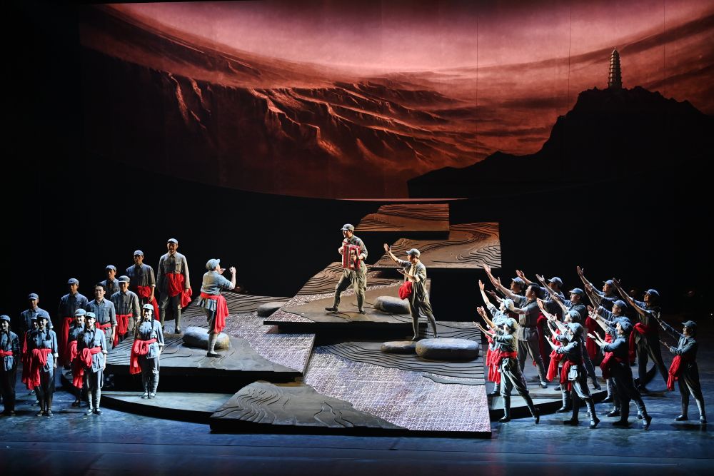 2025年7月29日,演員在陜西延安的金延安文化旅游產(chǎn)業(yè)園區(qū)表演紅色歌舞劇《延安十三年》。近年來(lái),延安市以“傳承紅色基因”為目標(biāo),采用新科技、新理念、新手段,推出多部高質(zhì)量劇目。生動(dòng)感人的故事情節(jié)、富有沖擊力的視聽(tīng)效果、沉浸式的觀(guān)賞體驗(yàn)——守正創(chuàng)新的表達(dá)方式讓紅色文化“活起來(lái)”。
