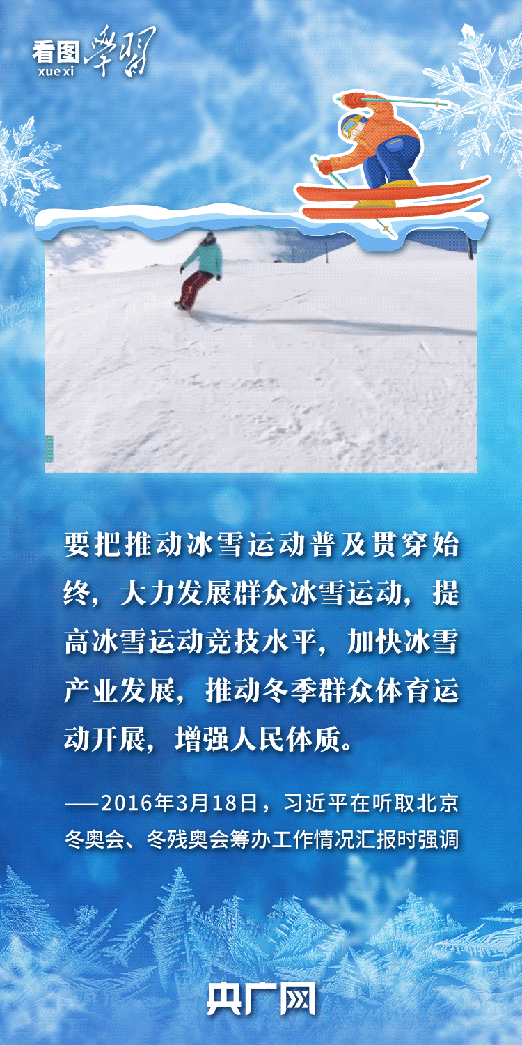 “人生幸福快樂(lè),強(qiáng)身健體十分重要?!币恢币詠?lái),習(xí)近平總書(shū)記高度重視我國(guó)冰雪運(yùn)動(dòng)發(fā)展,強(qiáng)調(diào)要大力發(fā)展群眾冰雪運(yùn)動(dòng),提高冰雪運(yùn)動(dòng)競(jìng)技水平,加快冰雪產(chǎn)業(yè)發(fā)展,推動(dòng)冬季群眾體育運(yùn)動(dòng)開(kāi)展,增強(qiáng)人民體質(zhì)。