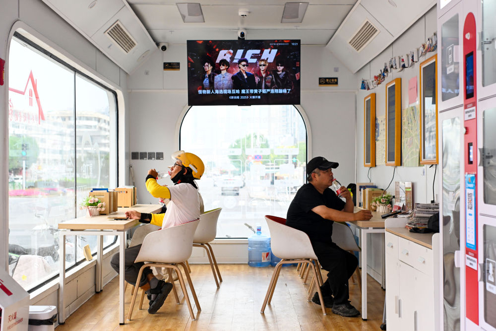 2025年6月9日,幾名戶外勞動者在天津市河西區(qū)文化中心工會驛站休息。2025年12月發(fā)布的