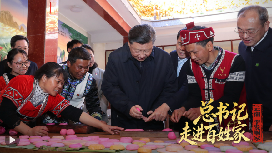 2020年春節(jié)前夕,習(xí)近平總書記走進云南騰沖市清水鄉(xiāng)三家村中寨司莫拉佤族村,同村民李發(fā)順一家制作當(dāng)?shù)毓?jié)日傳統(tǒng)食品大米粑粑??倳浺贿B做了兩個,笑著說:“摁了個福字,再來一個喜字,有福有喜?!?/p>