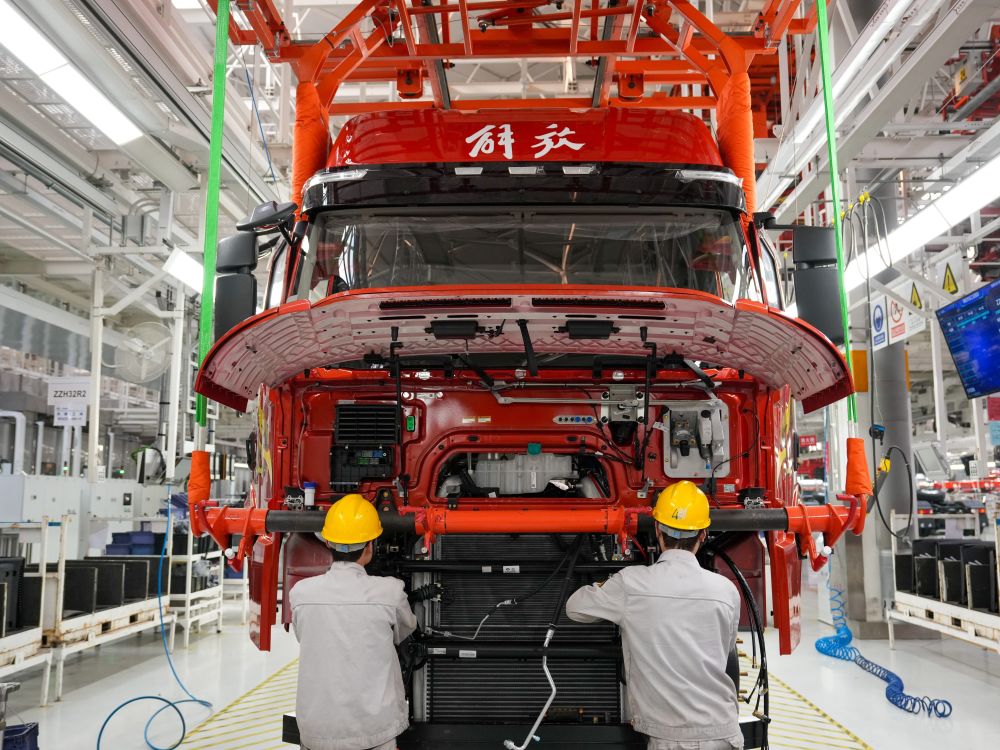 2026年1月4日,工人在位于吉林省長(zhǎng)春市的一汽解放J7整車(chē)智能工廠裝配車(chē)輛。新華社記者 張楠 攝
