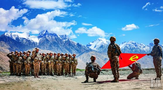 △2025年7月1日,“劉老莊連”組織黨員重溫入黨誓詞。(解放軍畫報謝沅鑫拍攝)