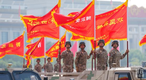 △九三閱兵中的戰(zhàn)旗方隊。(總臺記者李晉拍攝)