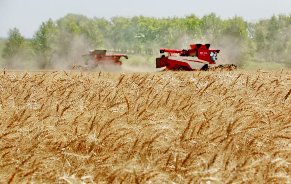 2025年8月5日,位于黑龍江省五大連池市的大慶油田農(nóng)場調(diào)動多臺聯(lián)合收割機(jī)搶收小麥。新華社發(fā)(陸文祥 攝)