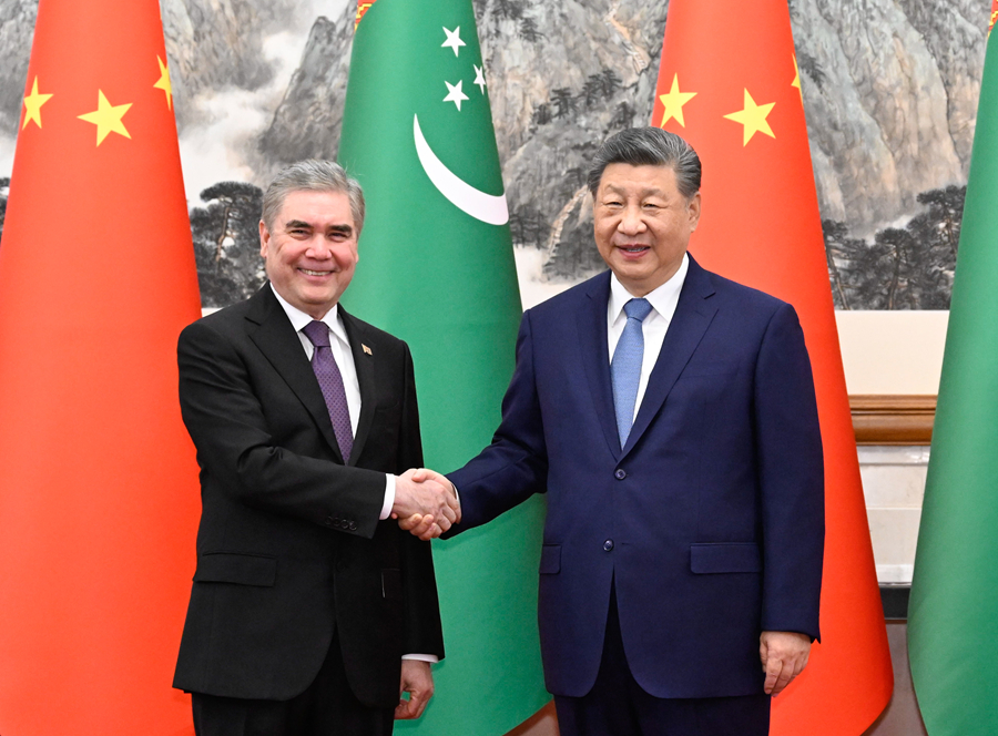 3月18日下午,國家主席習近平在北京釣魚臺國賓館會見來華進行友好訪問的土庫曼斯坦民族領袖、人民委員會主席別爾德穆哈梅多夫。新華社記者 申宏 攝