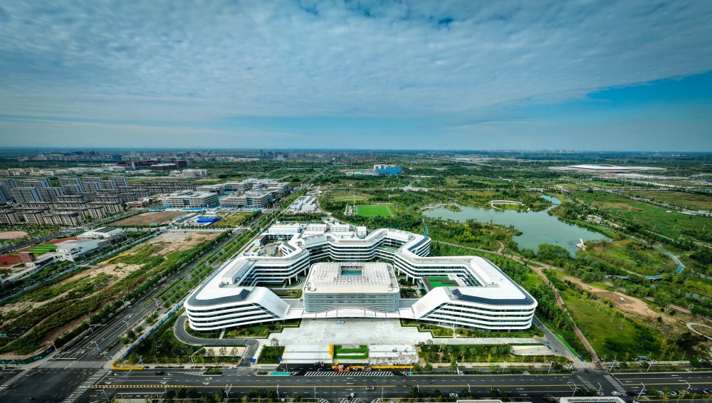 2023年6月30日,中共中央政治局召開會議,審議《關(guān)于支持高標(biāo)準(zhǔn)高質(zhì)量建設(shè)雄安新區(qū)若干政策措施的意見》。此后,一攬子特殊支持政策陸續(xù)落地雄安新區(qū)。2023年10月16日,雄安宣武醫(yī)院開診。首都醫(yī)科大學(xué)宣武醫(yī)院派來管理團(tuán)隊及骨干醫(yī)生,重點服務(wù)疏解人員和新區(qū)群眾,并輻射京津冀地區(qū)。這是2023年9月30日拍攝的雄安宣武醫(yī)院(無人機照片)。