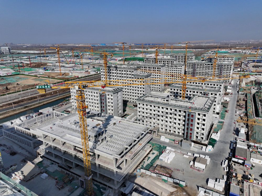 2021年是雄安新區(qū)大規(guī)模開發(fā)建設(shè)向縱深發(fā)展的關(guān)鍵一年。容東片區(qū)是雄安新區(qū)開發(fā)建設(shè)的先行區(qū)域,擔(dān)負(fù)著承接北京非首都功能疏解和安置回遷群眾的重要任務(wù)。這是2021年4月8日拍攝的雄安新區(qū)容東片區(qū)安置房項目建設(shè)現(xiàn)場(無人機照片)。2021年10月,容東第一批安置房開始交付。