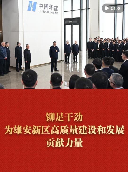 3月23日,習(xí)近平總書(shū)記來(lái)到河北雄安新區(qū),察看啟動(dòng)區(qū)建設(shè)進(jìn)展,考察中國(guó)華能集團(tuán)有限公司,了解雄安新區(qū)建設(shè)發(fā)展情況,親切慰問(wèn)入駐和在建疏解單位干部職工代表?! ?/p>