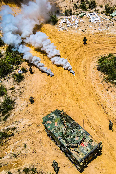 陸軍第73集團軍某旅“強軍精武紅四連”組織官兵開展連貫戰(zhàn)術(shù)訓練(2023年5月30日攝)。