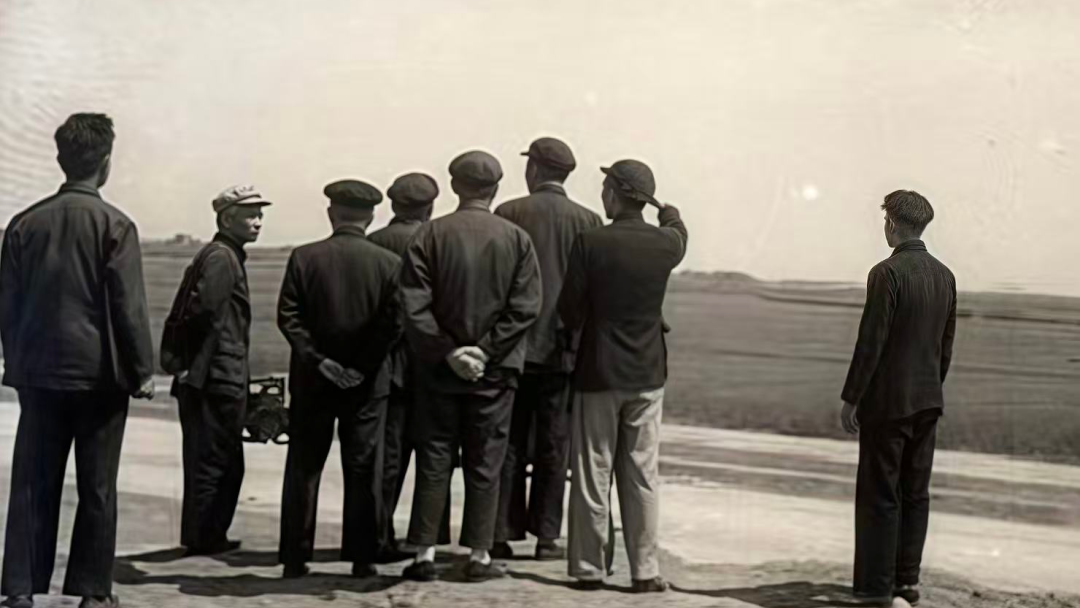 1955年,校長(zhǎng)彭康與教授們?cè)谖靼阐溙镏刑た毙滦V罚▓D片來(lái)源:西安交通大學(xué)新聞網(wǎng))