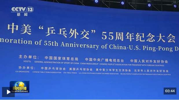4月10日,習(xí)近平主席向中美“乒乓外交”55周年紀(jì)念大會暨中美青少年體育交流系列活動啟動儀式致賀信,高度評價“乒乓外交”的歷史和現(xiàn)實意義,鼓勵兩國各界人士特別是青年一代相知相親、攜手前行,為兩國關(guān)系注入強(qiáng)大動力和溫暖能量。習(xí)近平主席的賀信在中美各界人士中引發(fā)熱烈反響。