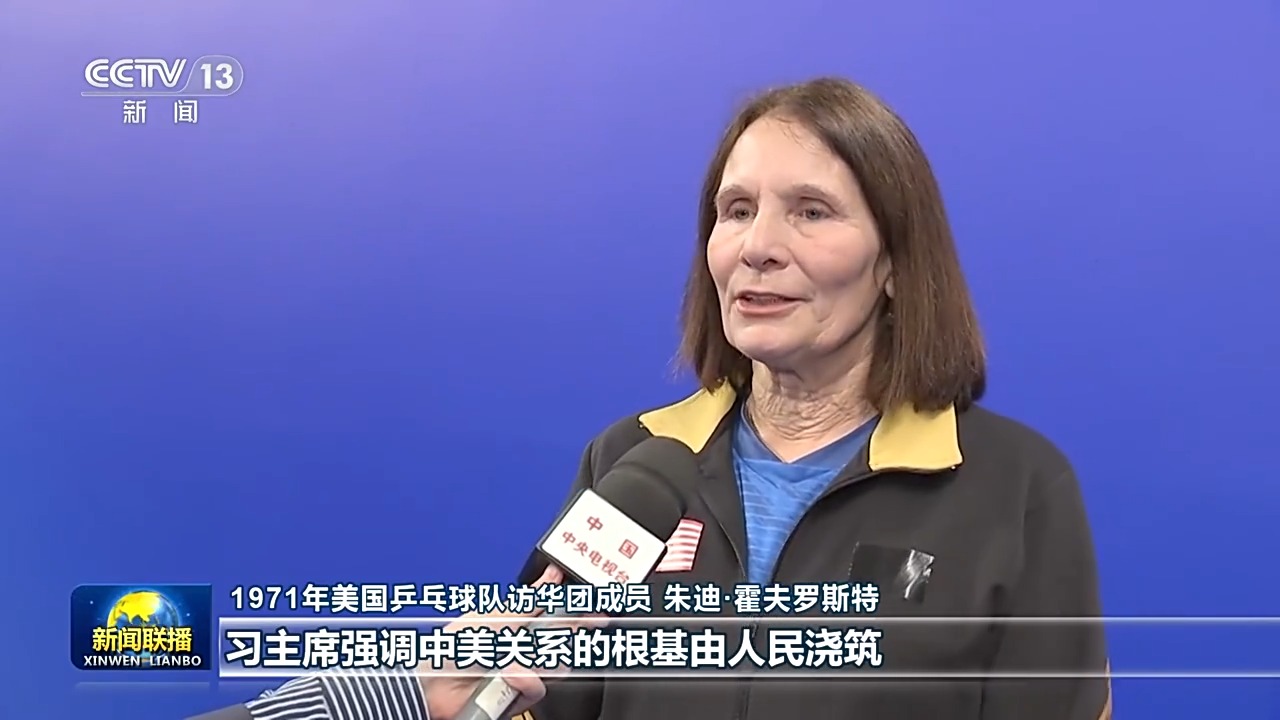 1971年美國乒乓球隊訪華團(tuán)成員 朱迪·霍夫羅斯特:習(xí)主席強(qiáng)調(diào)中美關(guān)系的根基由人民澆筑,這一點(diǎn)我深有感觸。在當(dāng)下,相互理解與對話比任何時候都更加重要,我也希望我們能將“乒乓外交”精神繼續(xù)傳承,在兩國人民間傳遞溫情,增進(jìn)理解。