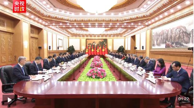4月15日上午,中共中央總書記、國(guó)家主席習(xí)近平在人民大會(huì)堂同來華進(jìn)行國(guó)事訪問的越共中央總書記、國(guó)家主席蘇林舉行會(huì)談。