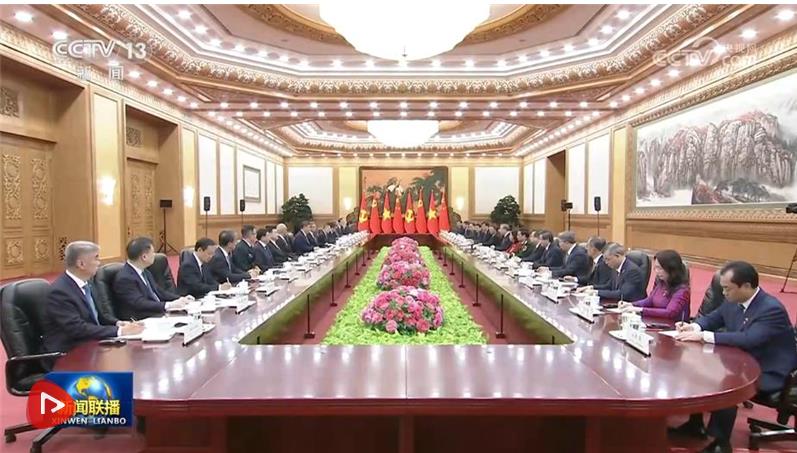 蘇林表示,這是我當(dāng)選越南國家主席后首次出訪,也正值習(xí)近平總書記、國家主席去年對越進(jìn)行歷史性訪問一周年,充分反映了總書記同志所說的“鄰里越走越親”。越方感謝中國共產(chǎn)黨、政府和人民對越共十四大提供的重要政治支持,愿始終同中方賡續(xù)傳統(tǒng)友誼,推動兩國全面戰(zhàn)略合作伙伴關(guān)系和具有戰(zhàn)略意義的命運共同體不斷發(fā)展。越方祝賀中國勝利完成“十四五”規(guī)劃并取得歷史性成就,相信中方將順利實施“十五五”規(guī)劃,不斷推進(jìn)高質(zhì)量發(fā)展和社會主義現(xiàn)代化建設(shè),如期實現(xiàn)第二個百年奮斗目標(biāo),并成為世界和平發(fā)展的支柱力量和首要動力。
