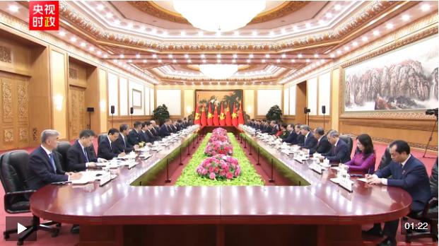 4月15日上午,中共中央總書記、國(guó)家主席習(xí)近平在人民大會(huì)堂同來華進(jìn)行國(guó)事訪問的越共中央總書記、國(guó)家主席蘇林舉行會(huì)談。