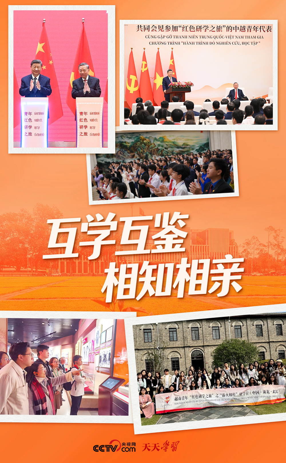 2025年4月15日,習近平總書記在訪問越南期間宣布,中方將在今后3年邀請越南青年赴華開展“紅色研學之旅”,沿著兩黨兩國老一輩領導人的革命足跡,探尋中越友好的紅色基因,感受中國式現(xiàn)代化的萬千氣象,為兩國各自社會主義事業(yè)和構建具有戰(zhàn)略意義的中越命運共同體凝聚青春力量。當日,中越兩黨兩國領導人與雙方代表共同按下按鈕,啟動“紅色研學之旅”項目,為兩國青年搭建起跨越國界、聯(lián)結初心的友誼橋梁。