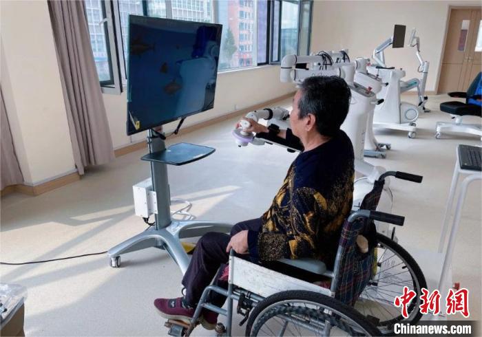 寧陽(yáng)縣醫(yī)養(yǎng)服務(wù)中心內(nèi),老人在借助智能化設(shè)備做康復(fù)訓(xùn)練。寧陽(yáng)縣委宣傳部供圖