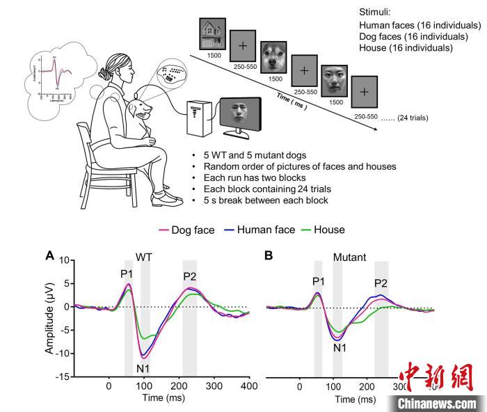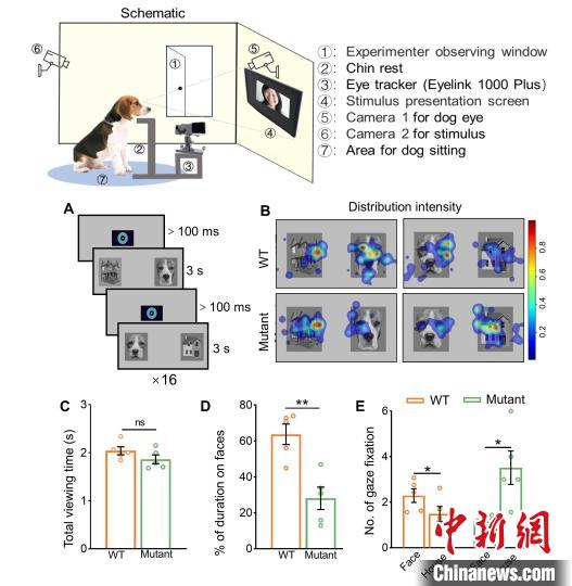 論文第一作者、中國科學院遺傳發(fā)育所博士生袁思琦說,家犬在長期家養(yǎng)馴化過程中獲得卓越的面孔認知能力(會看臉色),是研究面孔加工的理想動物模型之一。在團隊前期成功構(gòu)建孤獨癥家犬模型的基礎(chǔ)上,本次研究進一步發(fā)現(xiàn)攜帶Shank3基因突變的比格犬表現(xiàn)出類似孤獨癥患者的面孔加工異常,這為研究面孔加工的神經(jīng)機制和干預(yù)方案提供了寶貴的動物模型。