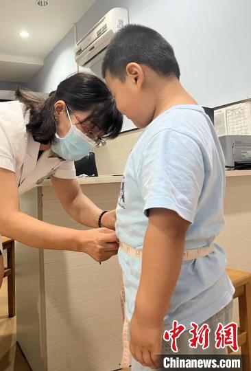 圖為西安市兒童醫(yī)院營養(yǎng)科主任醫(yī)師劉瑞萍(左)測量兒童身體數(shù)據(jù)。(受訪者供圖)
