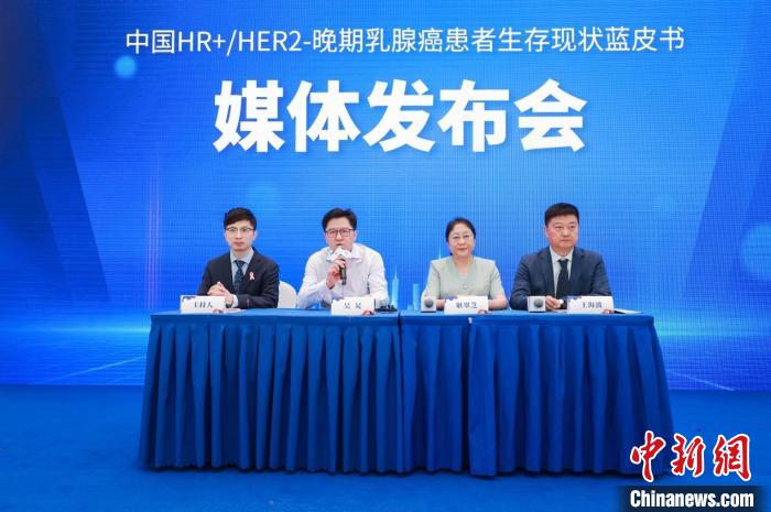 《中國(guó)HR+/HER2-晚期乳腺癌患者生存現(xiàn)狀藍(lán)皮書》在上?!俺鰻t”。(上海市健康促進(jìn)中心供圖)