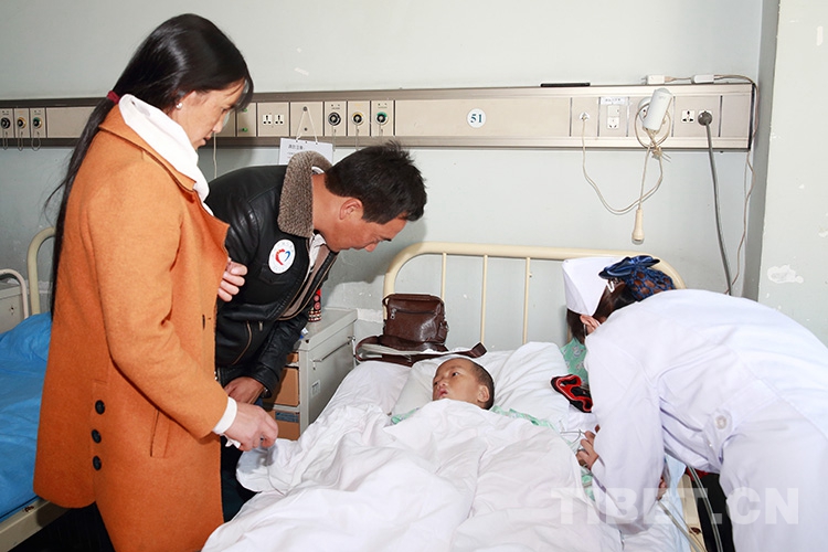 圖為手術(shù)前周軍(左三)看望次里白宗 攝影:陳衛(wèi)國(guó)