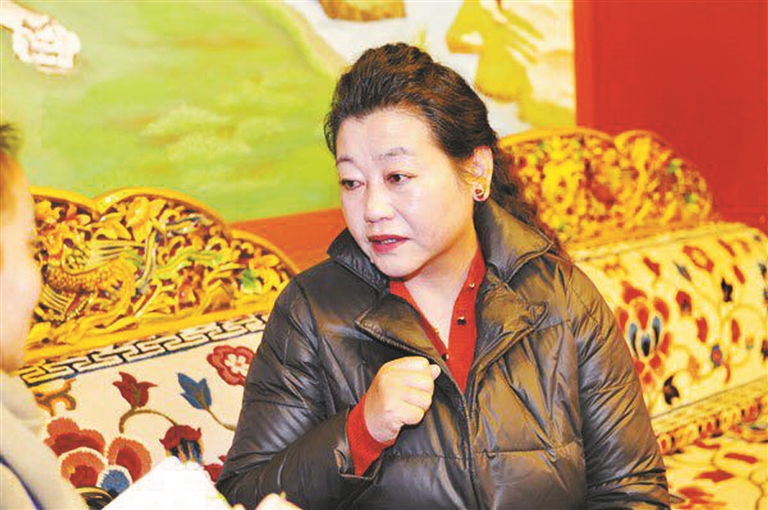 圖為人大代表扎西德吉在接受記者采訪。 記者 孫靖宇攝