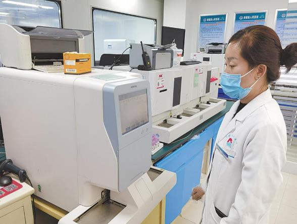 貴德縣人民醫(yī)院檢驗科醫(yī)師做檢驗。 通訊員 何君 攝