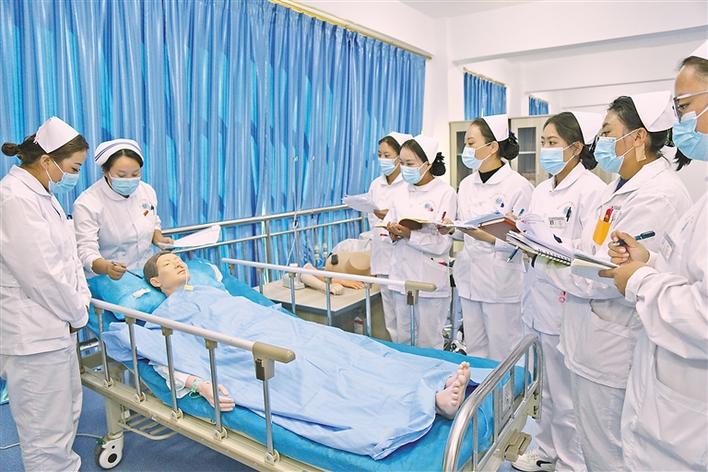 圖為在墨竹工卡縣人民醫(yī)院模擬技能培訓(xùn)中心,醫(yī)務(wù)人員進(jìn)行護(hù)理操作培訓(xùn)。記者 裴聰 攝