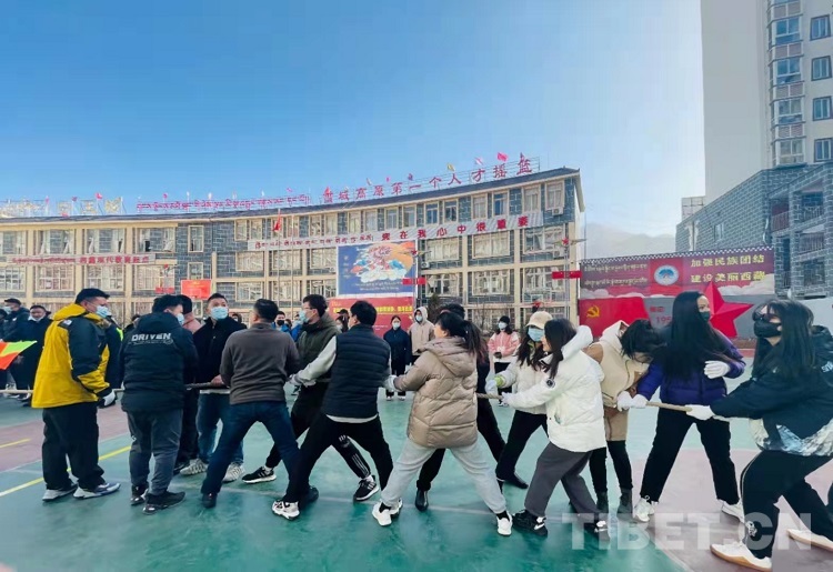 圖為昌都市實(shí)驗(yàn)小學(xué)參與拔河比賽熱情高漲