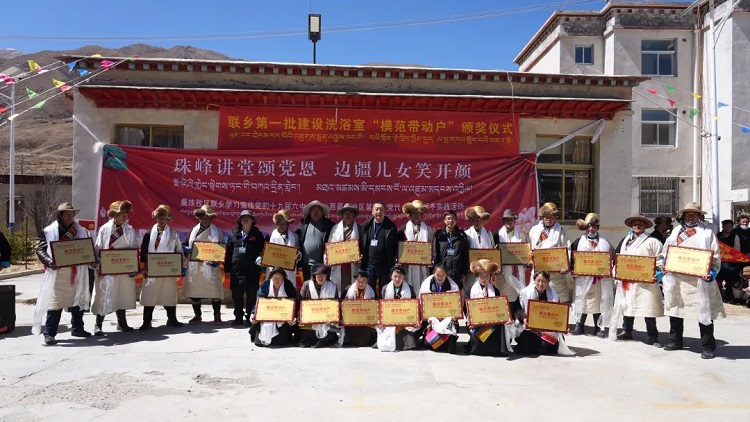 圖為聯(lián)鄉(xiāng)第一批建設(shè)洗浴室“模范勞動戶”頒獎儀式
