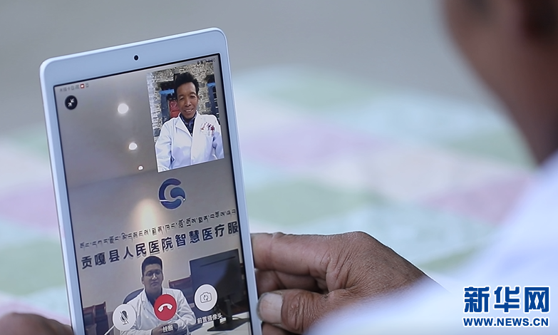 圖為貢嘎縣人民醫(yī)院遠程會診中心與鄉(xiāng)鎮(zhèn)衛(wèi)生院醫(yī)生遠程協(xié)診。受訪者供圖 新華網(wǎng)發(fā)