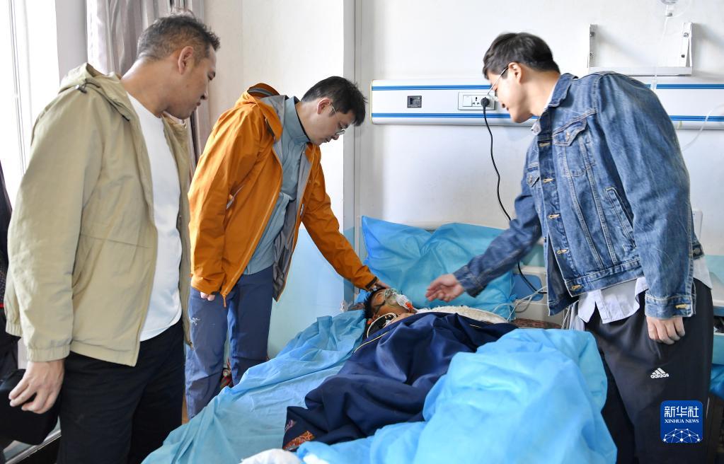 7月31日,在阿里地區(qū)人民醫(yī)院,中國醫(yī)學(xué)科學(xué)院整形外科醫(yī)院醫(yī)生王克明(右)和西藏自治區(qū)人民醫(yī)院醫(yī)生旦增念扎(左)和即將做手術(shù)的牧民巴吉聊天。新華社記者 張汝鋒 攝