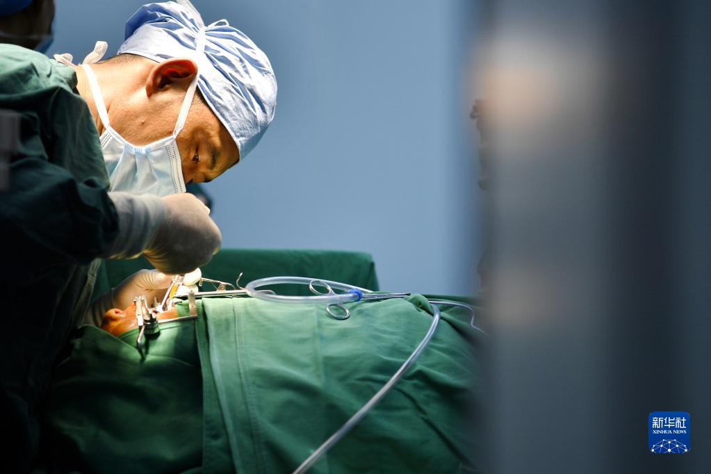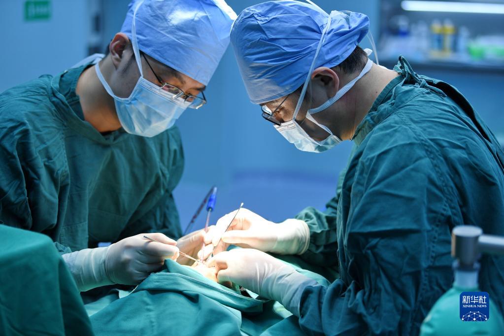 7月29日,在阿里地區(qū)人民醫(yī)院手術(shù)室,醫(yī)生為唇腭裂患者做修復(fù)手術(shù)。新華社記者 張汝鋒 攝