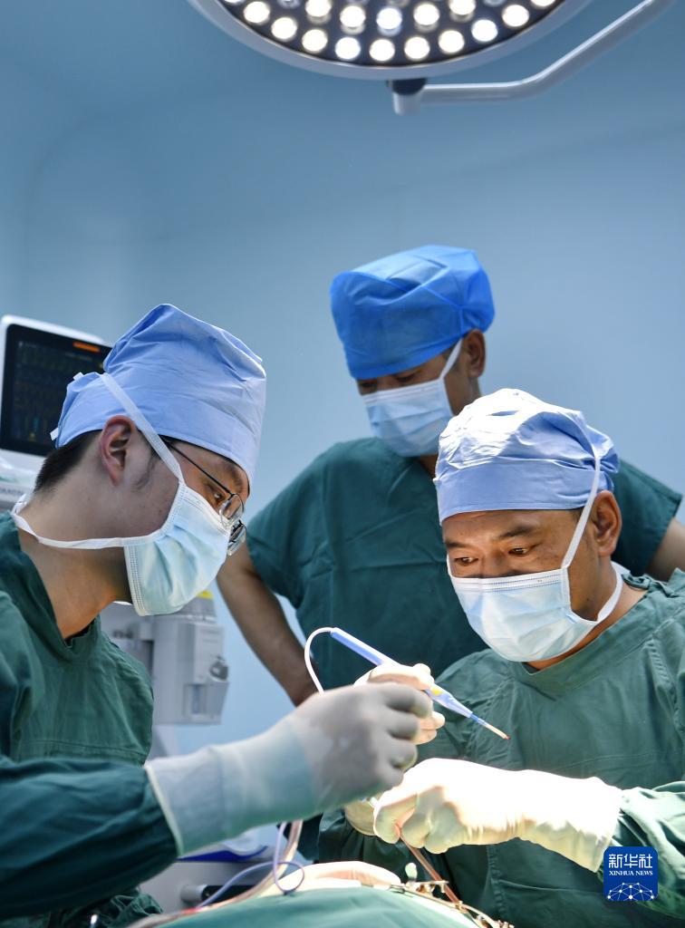 7月31日,中國醫(yī)學(xué)科學(xué)院整形外科醫(yī)院醫(yī)生王克明(右)在阿里地區(qū)人民醫(yī)院為一名唇腭裂患者做修復(fù)手術(shù)。新華社記者 張汝鋒 攝