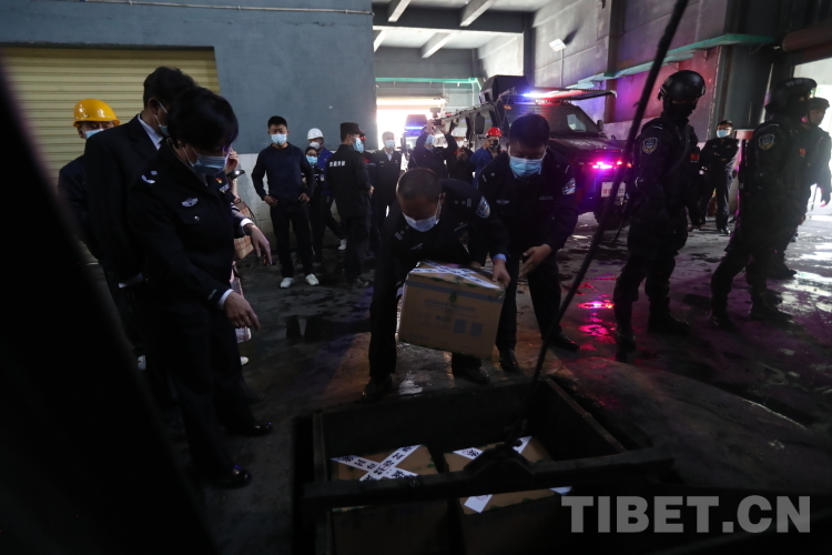 活動啟動后,貼有封條的50箱毒品被公安廳反恐特偵總隊公安民警和禁毒總隊民警裝運至曲水縣危廢處置中心采用無公害化技術焚燒銷毀。