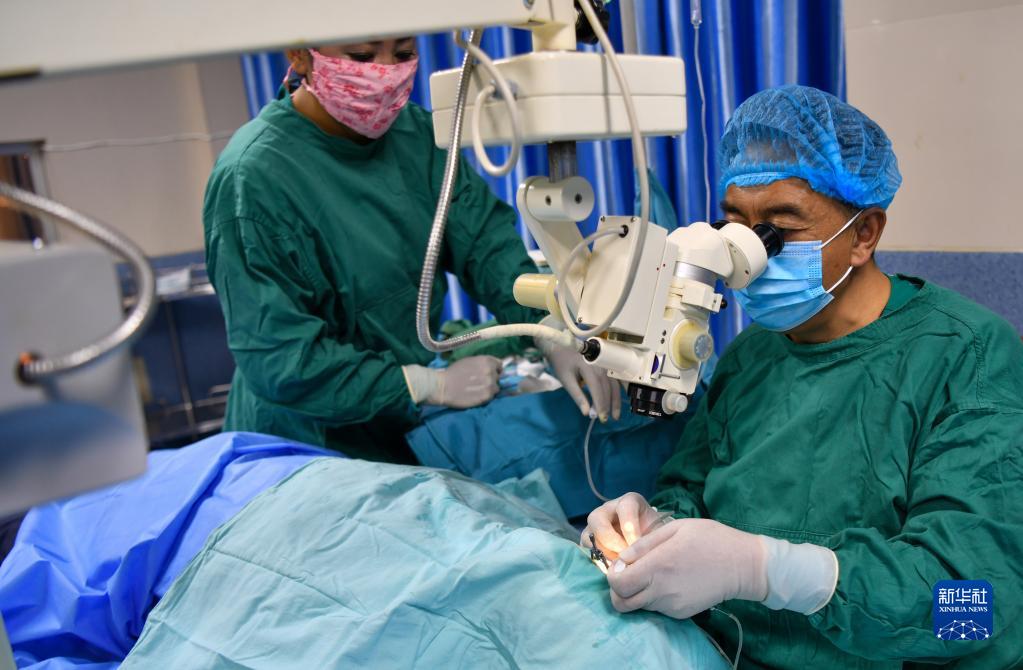 6月8日,光明眼科康復診療院的醫(yī)生在為一位農牧民患者做白內障手術。新華社記者 姜帆 攝