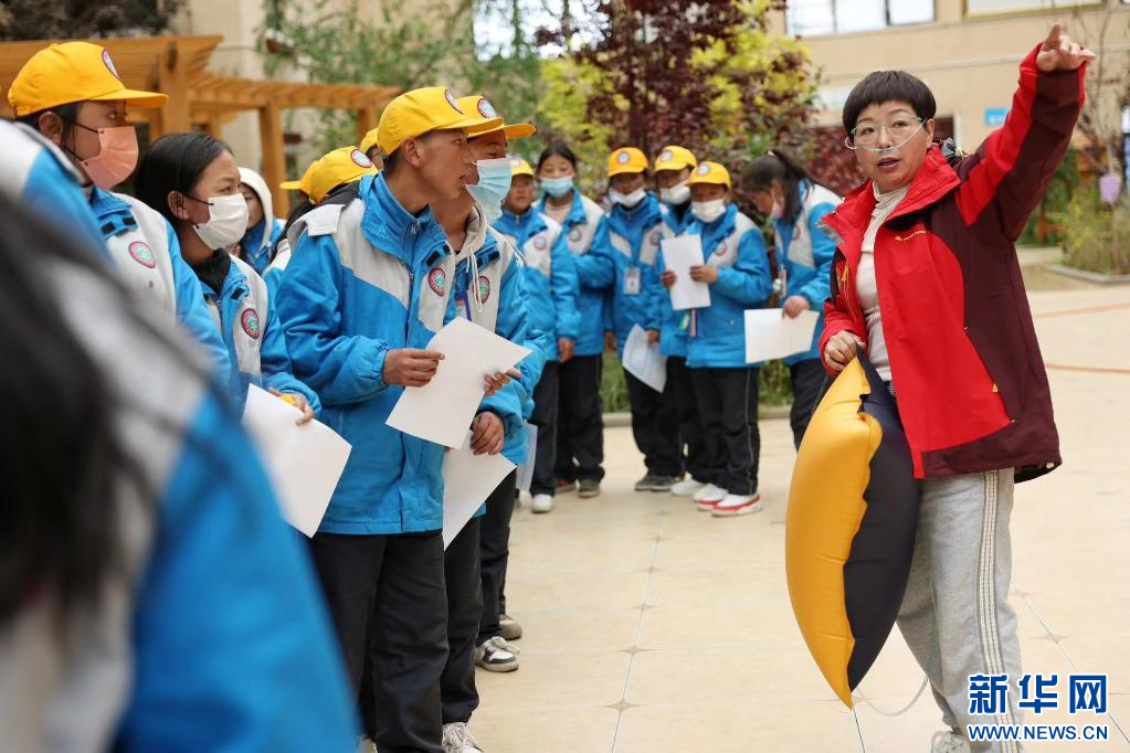 在西藏自治區(qū)那曲市色尼區(qū)第二中學(xué)(杭嘉中學(xué)),志愿者陳春玉正在引導(dǎo)學(xué)生排隊(duì)驗(yàn)光(6月22日攝)。新華社發(fā)(趙穎碩 攝)
