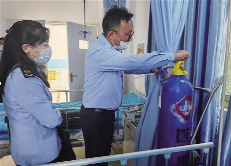 執(zhí)法人員對(duì)醫(yī)療器械進(jìn)行檢查。圖由拉薩市市場(chǎng)監(jiān)管局提供