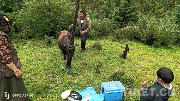 只見(jiàn)那頭受傷的牛被拴在木樁上,尾巴處還帶有一些血跡,顯得非常虛弱。索杰醫(yī)生先是把手術(shù)的傷口處仔細(xì)檢查了一遍,然后取來(lái)藥箱,在傷口處給藥,他告訴牧民家的男主人,?;謴?fù)得還可以,不要太擔(dān)心,留下的藥是這幾天涂抹和口服的,要按時(shí)服用。