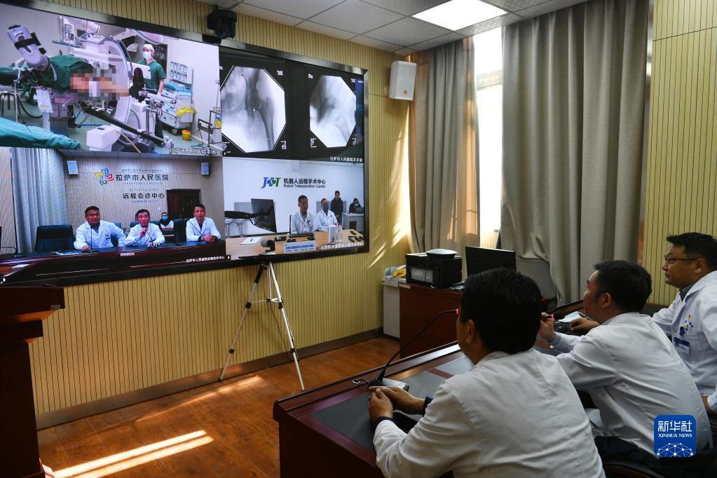 拉薩市人民醫(yī)院骨科醫(yī)生在北京積水潭醫(yī)院專家遠程指導下使用骨科機器人開展骨科手術(2021年4月19日攝)。新華社記者 孫瑞博 攝