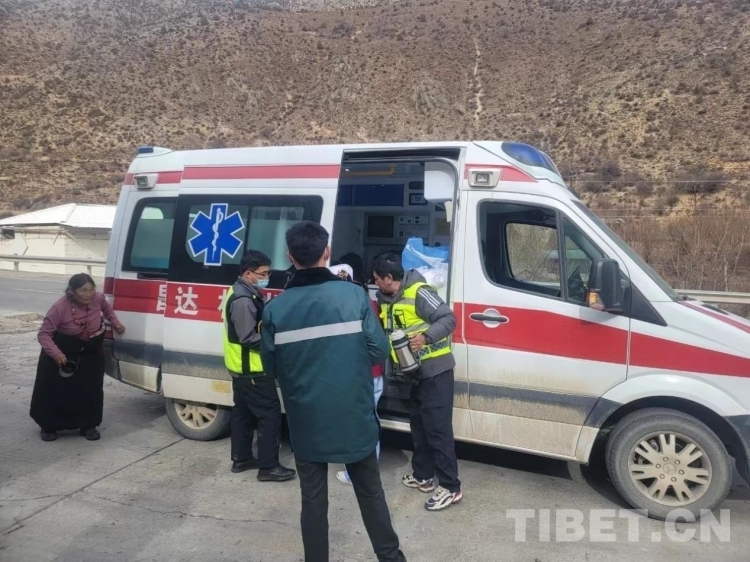 “沒事的,來,深呼吸。我們?cè)谌メt(yī)院的路上,昌都市人民醫(yī)院的急救車也正在趕過來,不用擔(dān)心?!彪S車的陳祿彥醫(yī)生不停安慰著嘎吉,并不停觀察著她的情況。