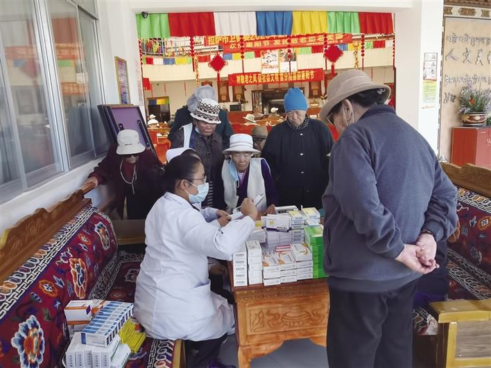 拉薩市衛(wèi)生健康委副主任張國紅說:“此次慰問活動不僅豐富了老人們的精神文化生活,也進一步弘揚了‘尊老、敬老、愛老、助老’的良好社會風(fēng)氣。”文藝活動結(jié)束后,拉薩市人民醫(yī)院的兩名西醫(yī)和城關(guān)區(qū)嘎瑪貢桑社區(qū)衛(wèi)生服務(wù)中心的兩名藏醫(yī)為老人們進行了義診服務(wù),根據(jù)老人們的實際需要免費發(fā)放了價值5000元的藥品。