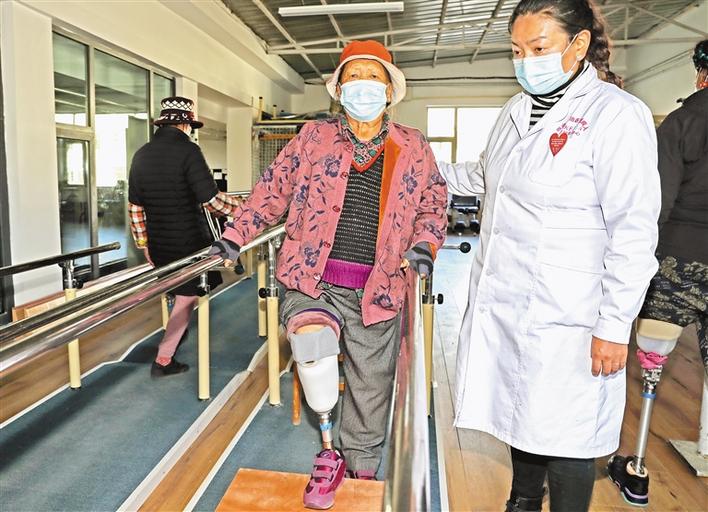 圖為西藏自治區(qū)殘疾人康復(fù)服務(wù)中心的工作人員在幫助殘疾人進(jìn)行康復(fù)訓(xùn)練。記者 唐斌 洛桑 攝