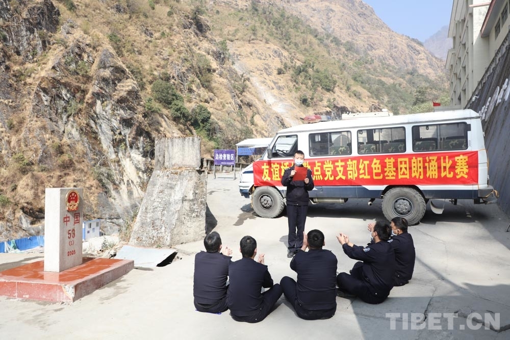中國(guó)西藏網(wǎng)訊 為提升完善四強(qiáng)黨支部建設(shè),豐富一線執(zhí)勤民警文化生活,1月27日,西藏自治區(qū)聶拉木出入境邊防檢查站友誼橋執(zhí)勤點(diǎn)在53號(hào)界碑旁舉行紅色基因朗誦比賽,為中國(guó)共產(chǎn)黨百年華誕獻(xiàn)禮。